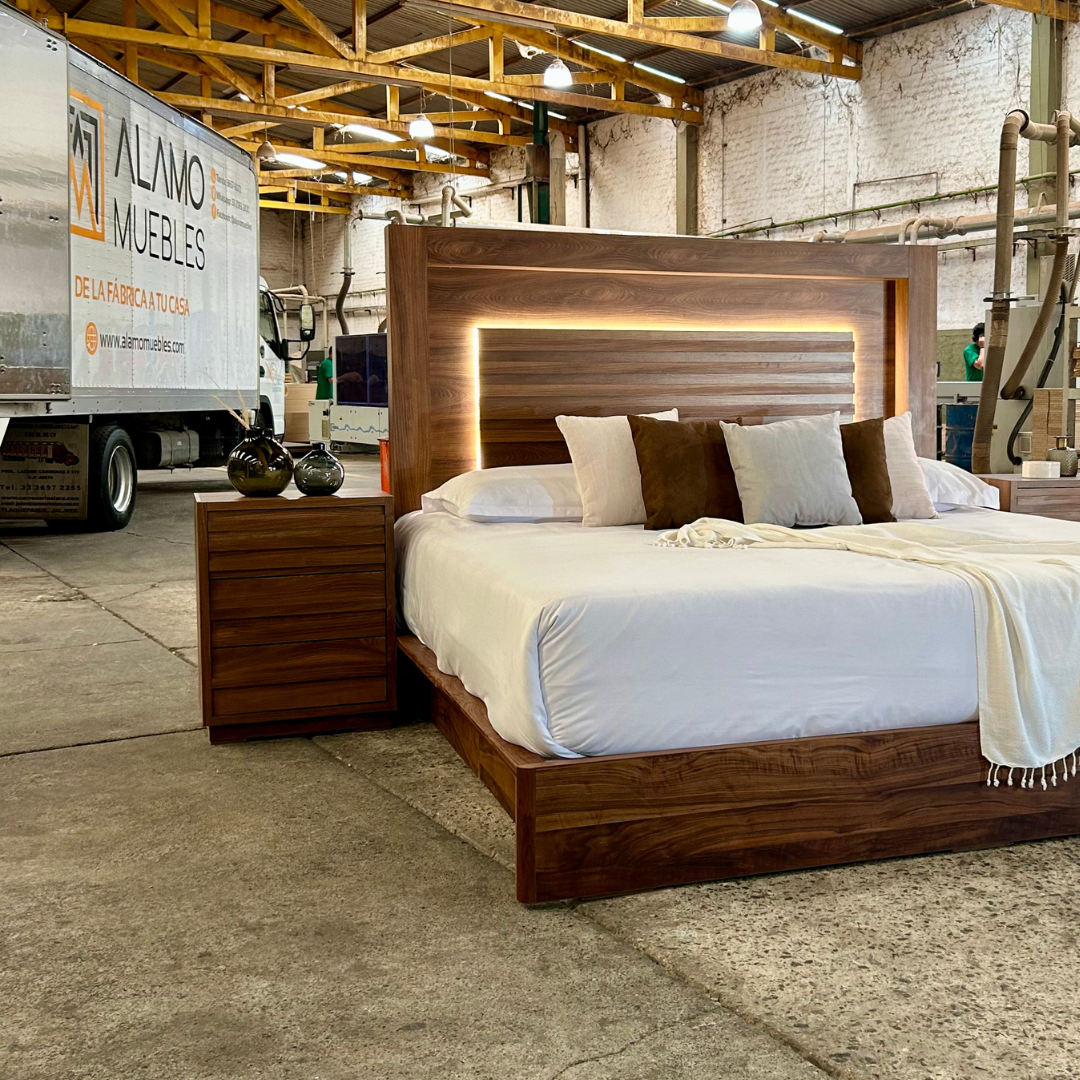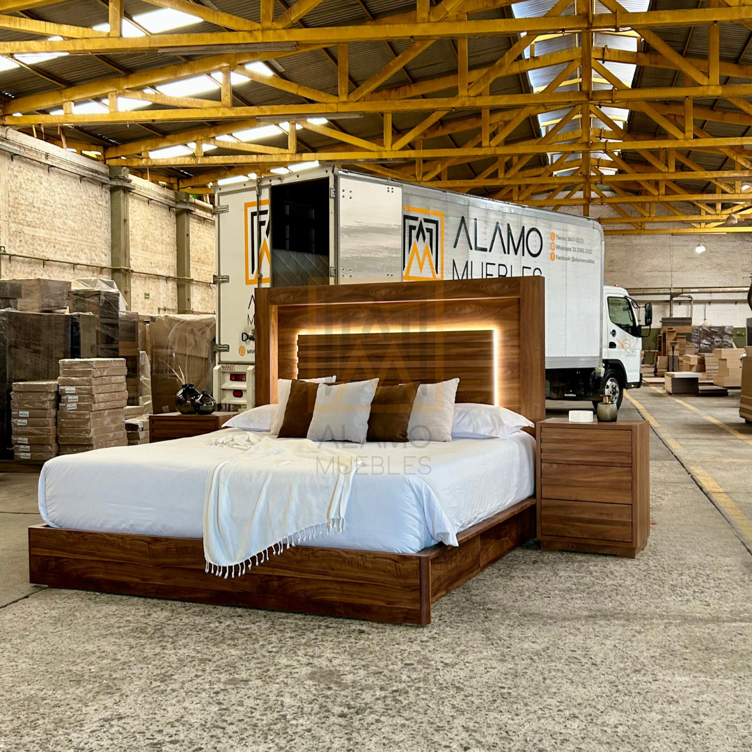1 Cabecera King size con luz + 2 Buros + 1 Base de cama King Size